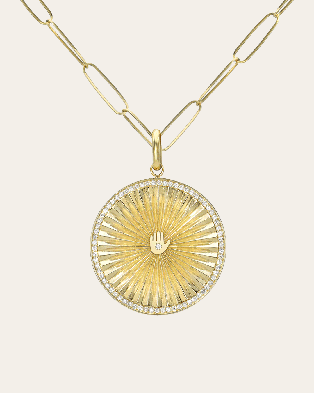 This bold take on personalization gives you more room to express your style. The 14K Yellow Gold Pleated Charm Disc Necklace from Zoe Lev starts at $1,100.00 and brings statement energy to everyday wear. Choose your disc size, classic gold or a diamond-embellished halo and customize it with up to five charms. The placement and styling are entirely up to you, making it easy to create something both modern and timeless.