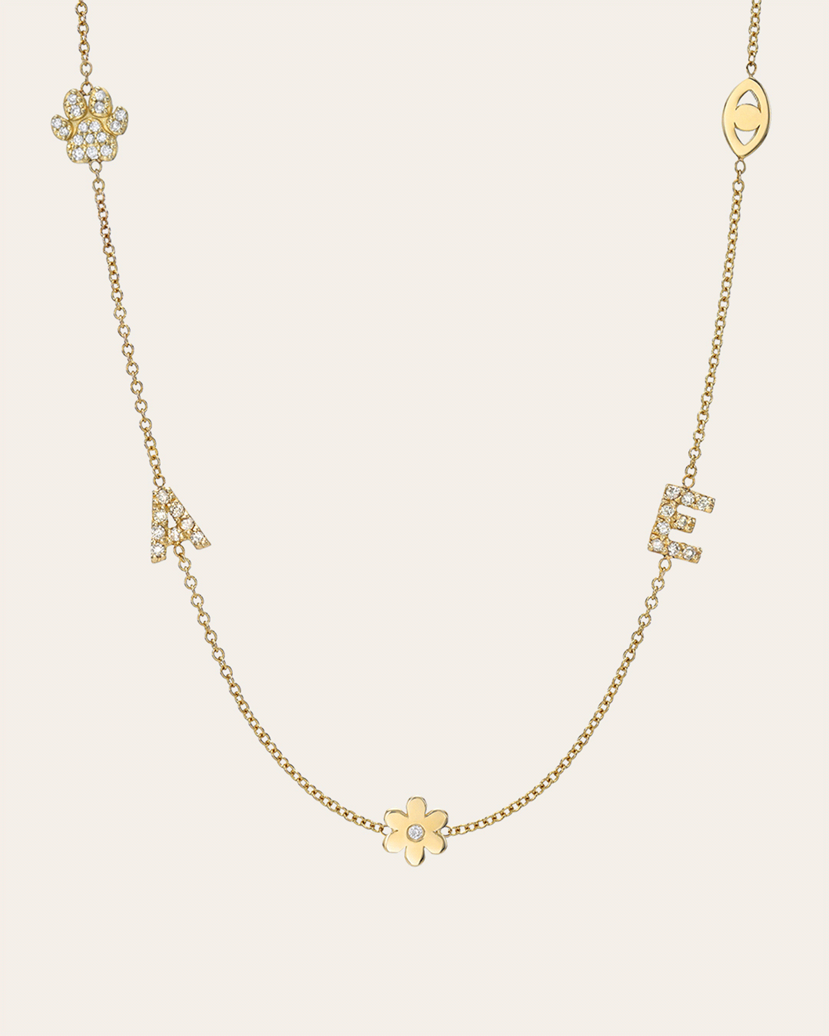 Designed for mixing sentiment with subtle sparkle, this charm necklace is a standout in the Zoe Lev jewelry collection. Available for $220.00, it features up to five 14K gold and diamond-accented initials, each thoughtfully strung along a fine cable link chain. The option to customize letter placement and necklace length makes it easy to create something truly personal, whether you're marking a milestone or spelling out a name that means everything.